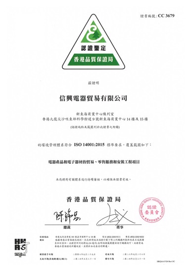 信興集團以鍥而不捨的努力推行名為「綠色辦公室」的環境管理措施來保護環境。集團內共有八間公司已符合ISO14001國際環境管理系統的要求並取得證書,其餘集團公司亦將緊隨其後,共同為保護環境出力。
